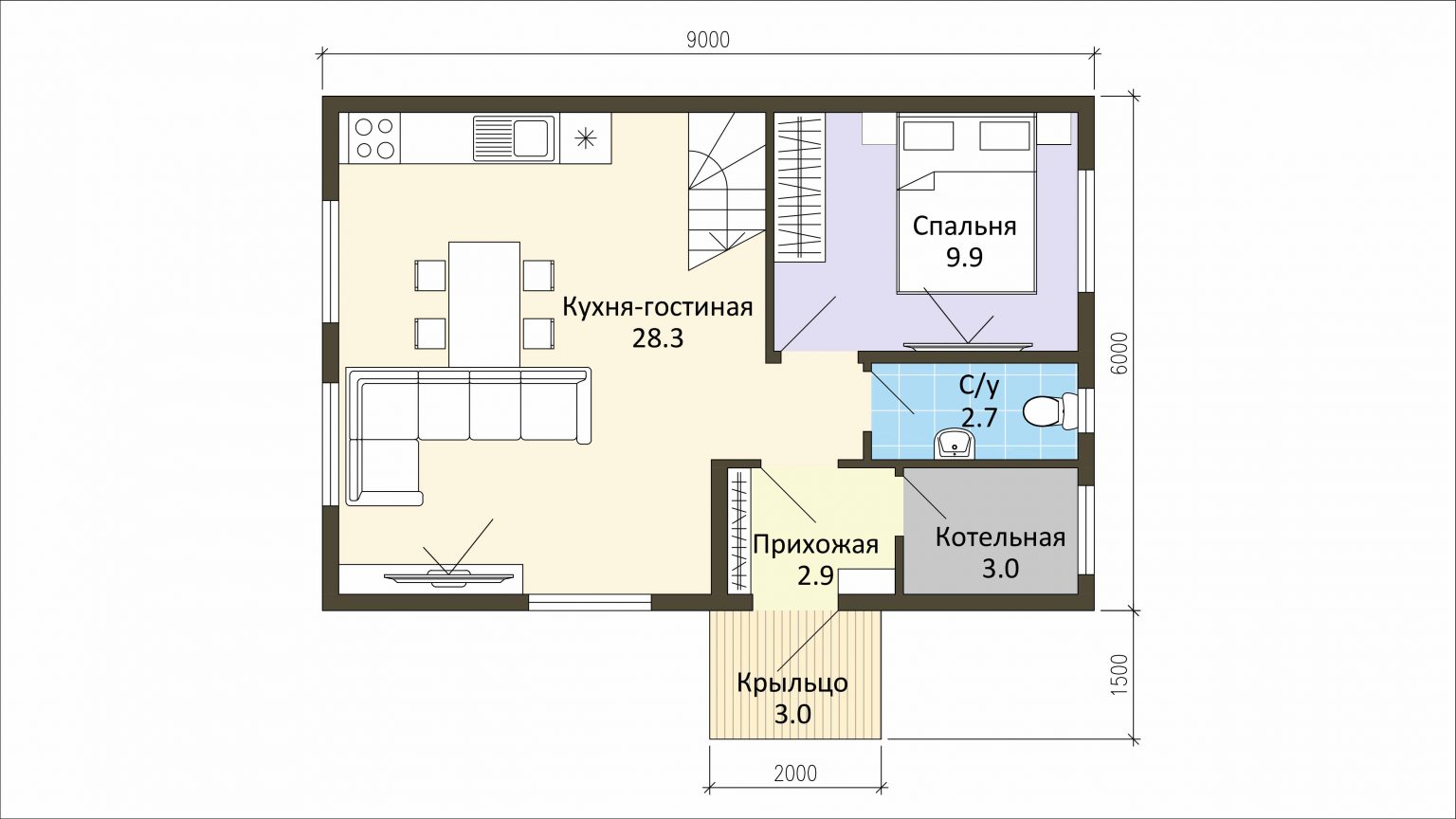 - Каркасный дом Боярин 6x9